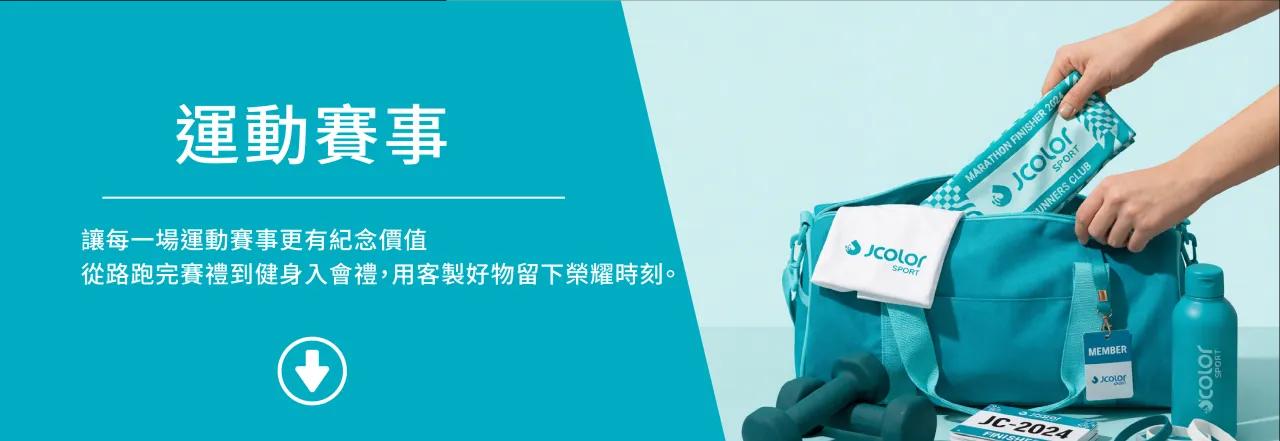 精選衣服等商品,協助賽事裝備整合識別、應援與頒獎需求,提升活動執行的專業質感。
